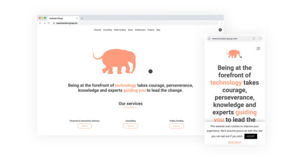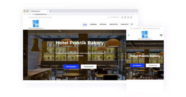 Web corporativa con catálogo de proyectos y blog de noticias.